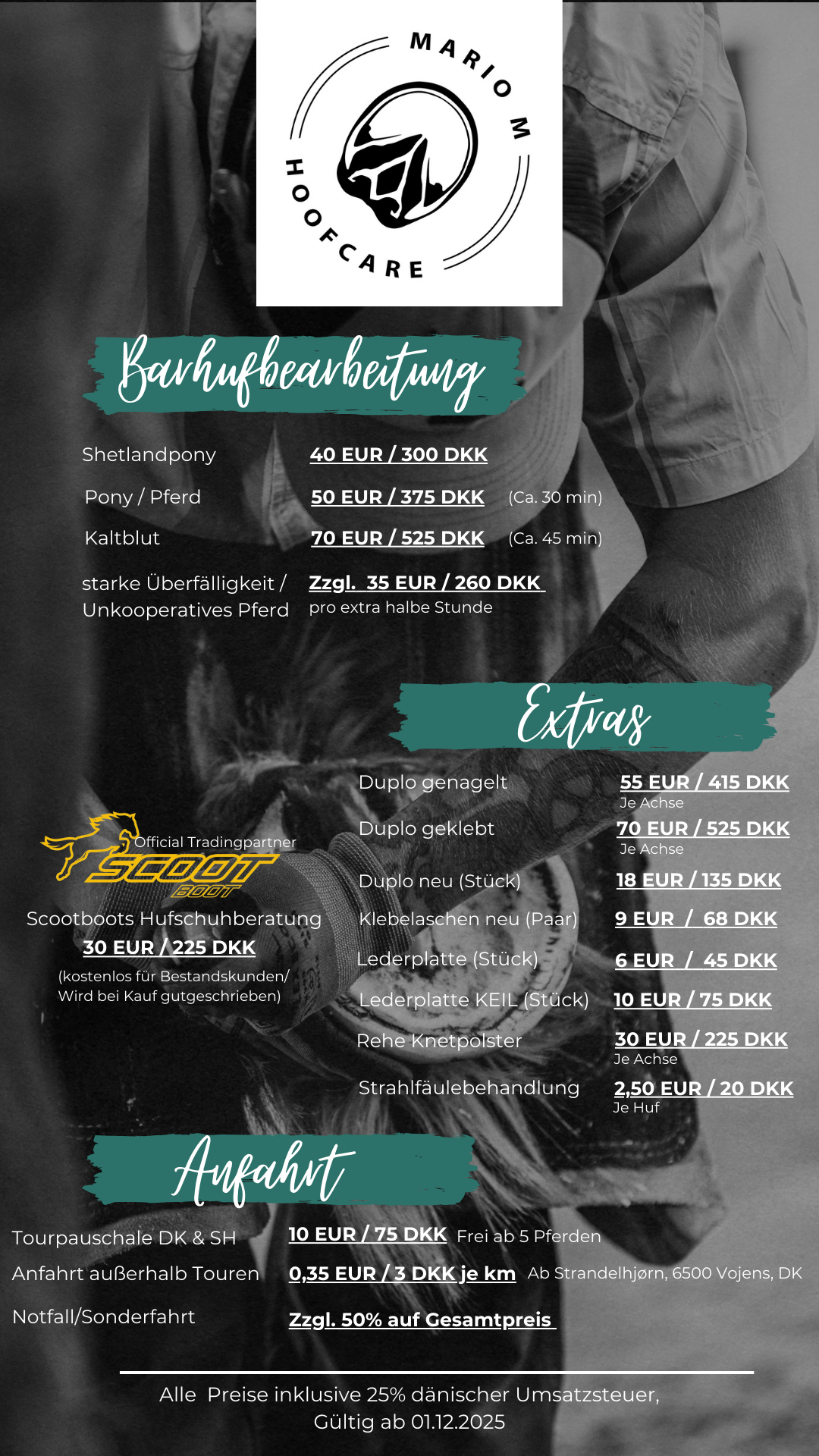 Dies garantiert all unseren Kunden nicht nur eine individuelle Hufbearbeitung mit Berücksichtigung der Biomechanik, sondern auch sinnvoll regelmäßige, zuverlässige Hufbearbeitung sowie eine sehr faire Preis/Leistung.